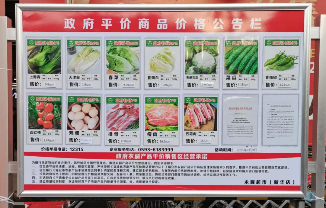 据悉,各平价商店每天从猪肉、禽蛋、蔬菜、鱼等16种商品中选择12种做稳价销售。政府按照“先控后补”的方式,蔬菜类以同类市场均价20%幅度给予补贴,肉、蛋、鱼类以同类市场均价7%幅度给予补贴。