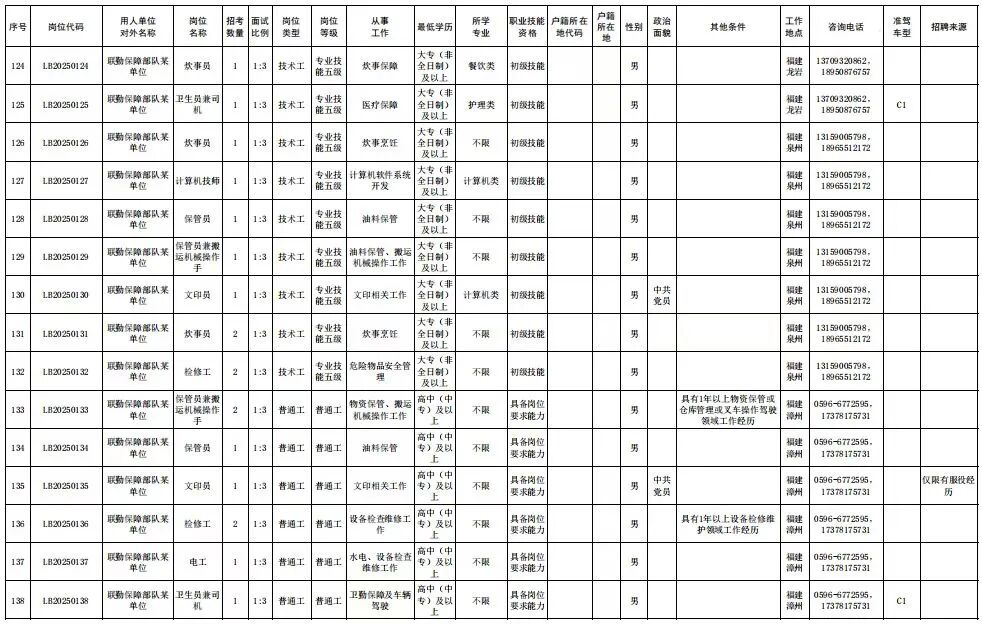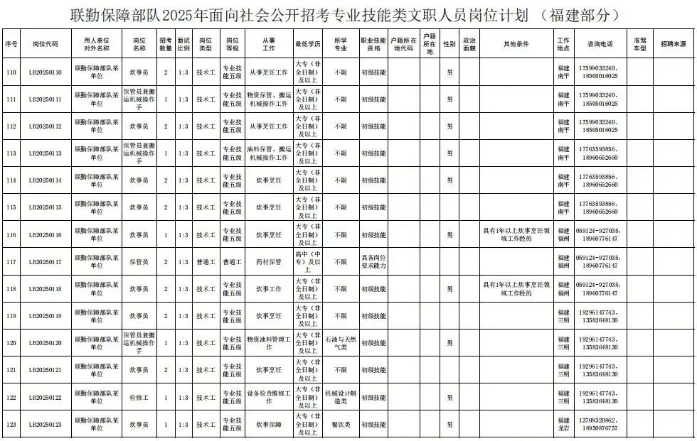 联勤保障部队2025年专业技能类文职人员公开招考公告