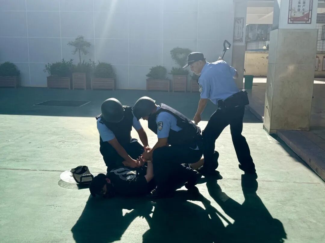 城北派出所还联合巡特警反恐大队组织开展安保实战技能培训。通过器械使用讲解、模拟对抗演练等方式,强化校园安保人员应对突发事件的处置能力和团队协作水平。