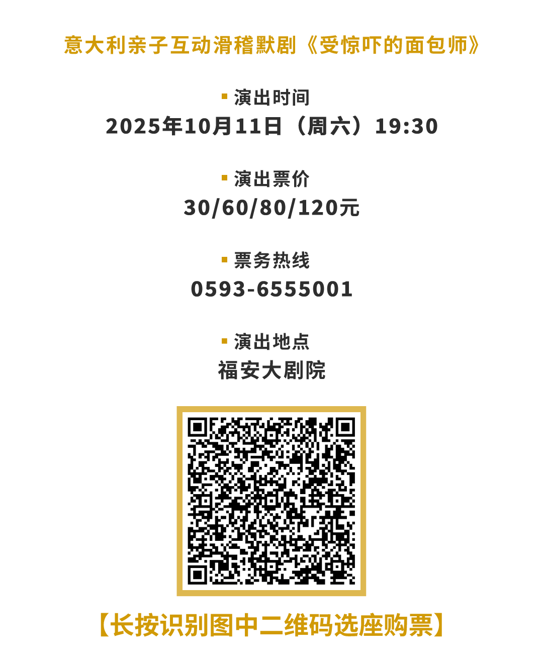 明天福安大剧院,意大利滑稽默剧《受惊吓的面包师》欢乐来袭!