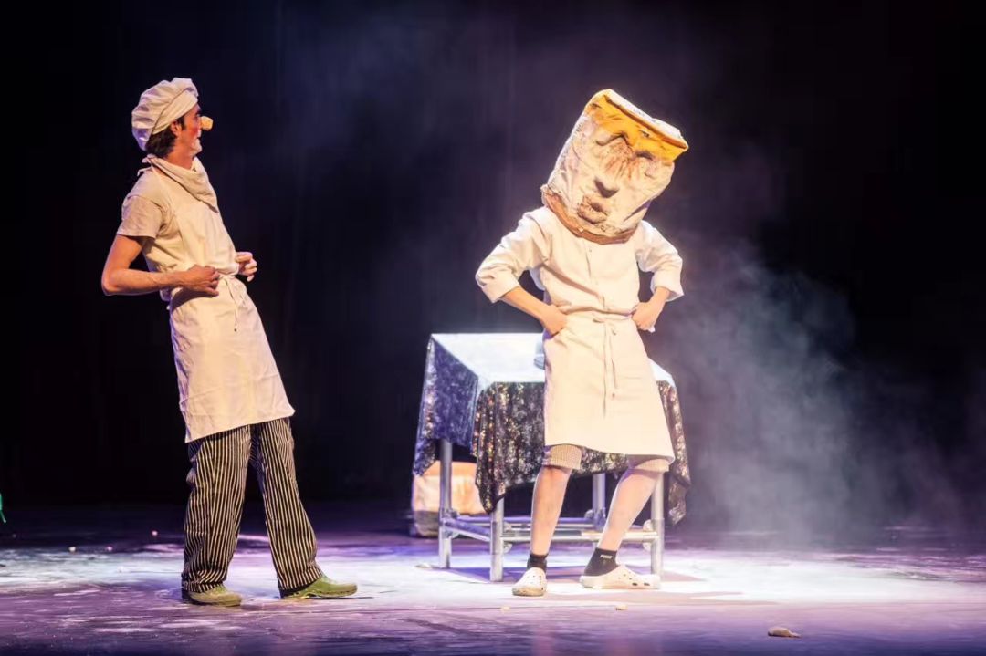 剧目延续了意大利默剧的经典质感,色彩明亮的舞台和充满童趣的道具,搭配面包师憨态可掬的形象。
