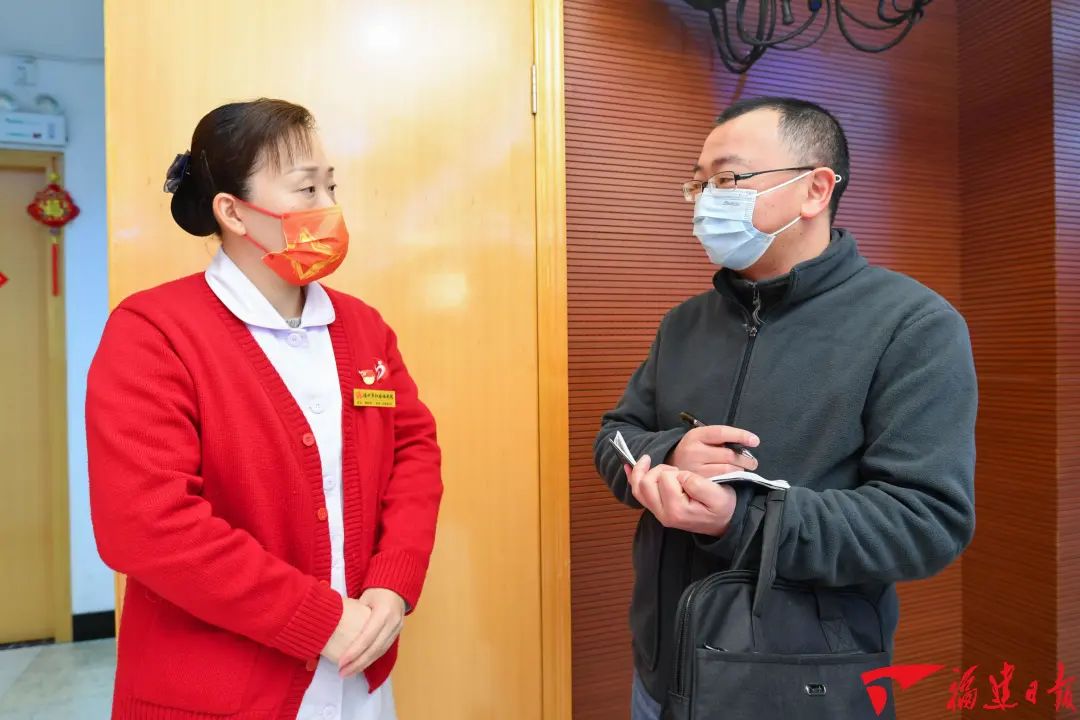 福州市社会福利院护理部主任陈晓君,向记者介绍护理老人的情况。福建日报记者 游庆辉 摄