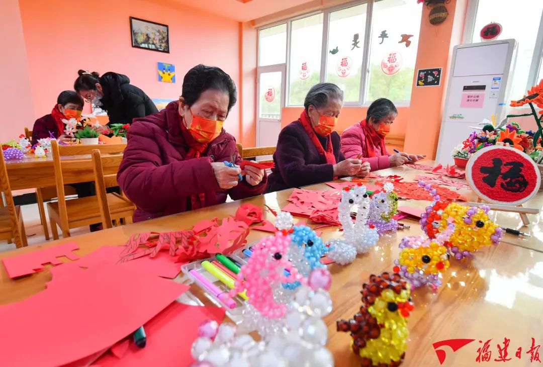 老人在福利院内,学习剪纸、绘画、工艺品制作等。福建日报记者 游庆辉 摄