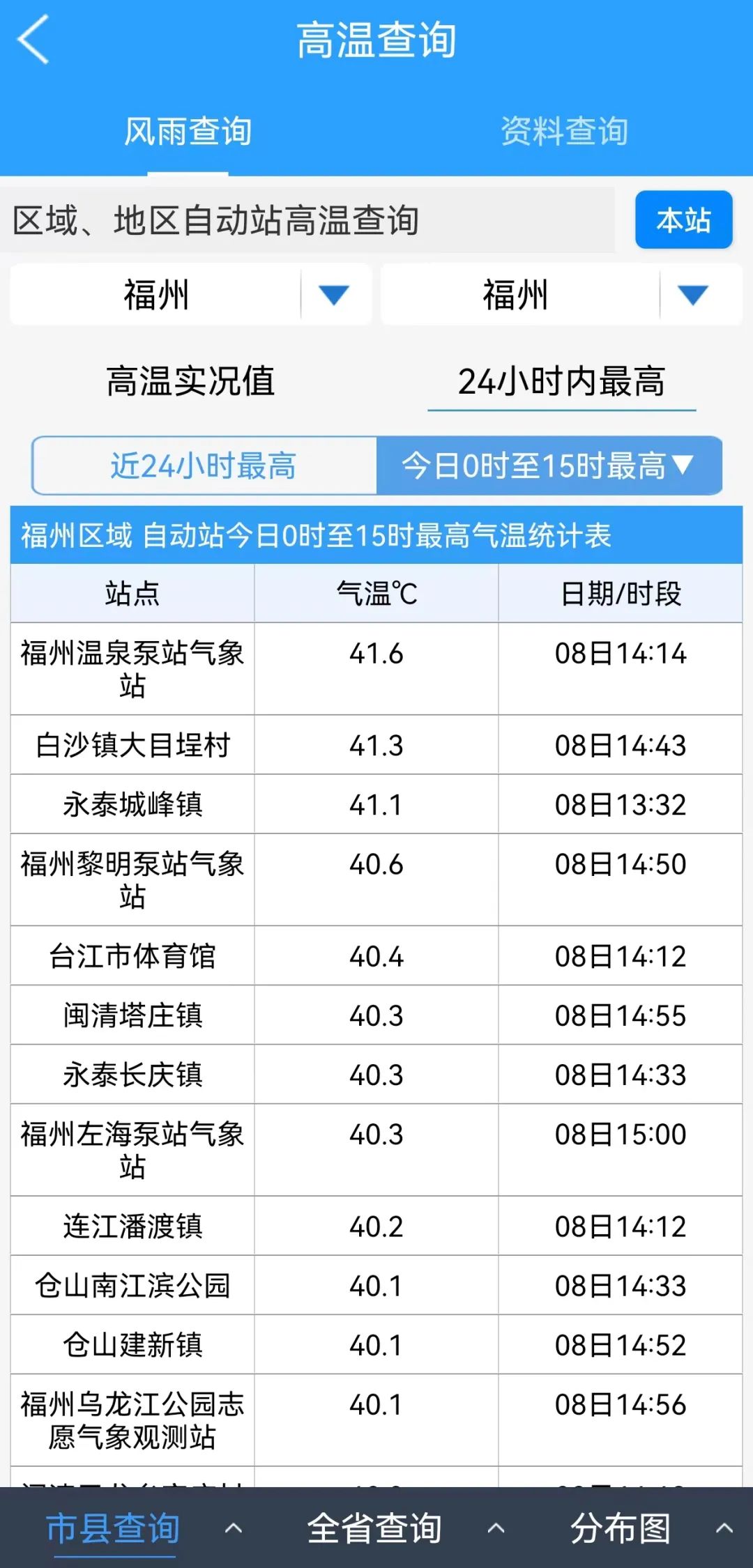 福建的高温天气