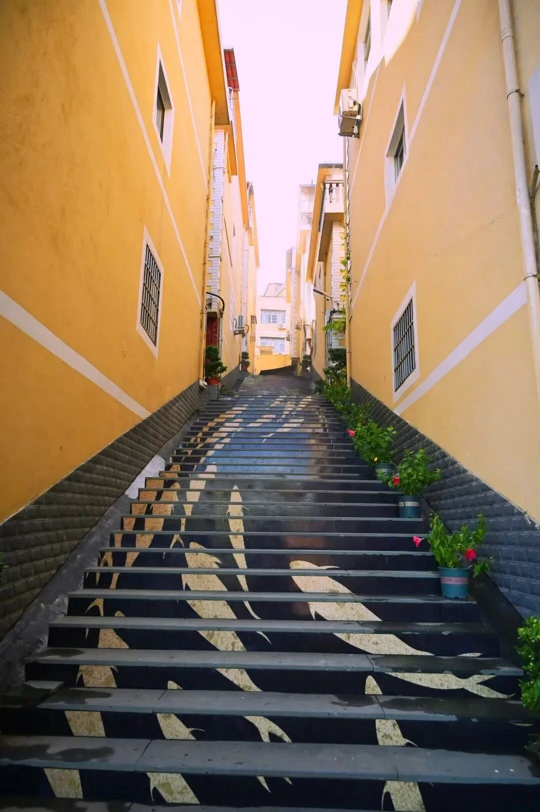 一幢幢粉的、蓝的、黄的小房子错落叠搭