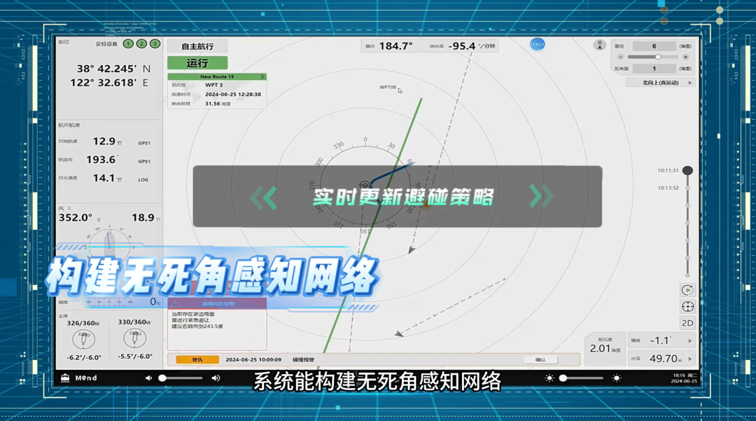 我们这套系统依托多模态传感器与数据融合,系统能构建无死角感知网络,突破雨雾、反光等测算距离。360°环视搭配雷达设备,可识别海上大小目标,感知准确率达99.2%,同时定位达到厘米级精度,经过10万海里实船验证的算法,航行参数实时毫秒级更新,让船舶在复杂水域能够看得清、定得准。