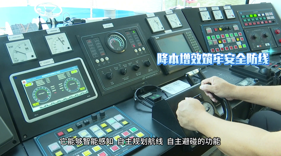 该系统凭借强大自主驾驶功能,可精简船员30%以上,能智能感知、自主规划航线、自主避碰的功能,可以将人工从核心航行环节里解放出来。同时系统在岸基控制台可以监控船舶动态,实时预警船舶异常。