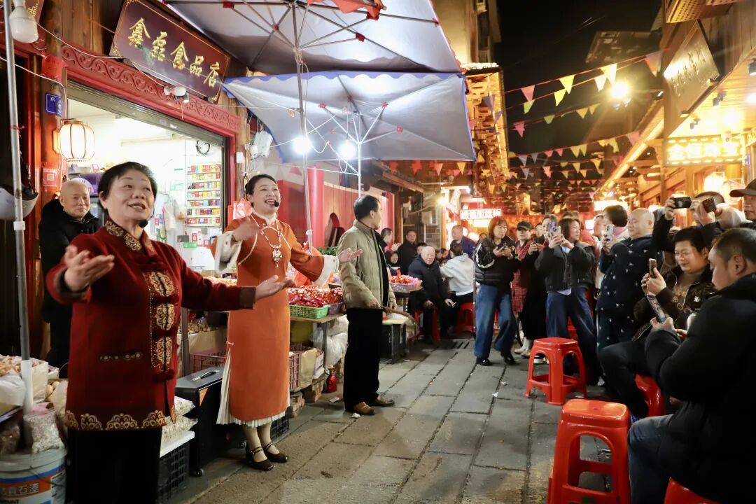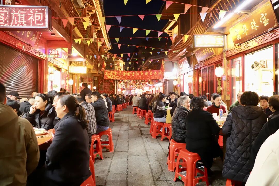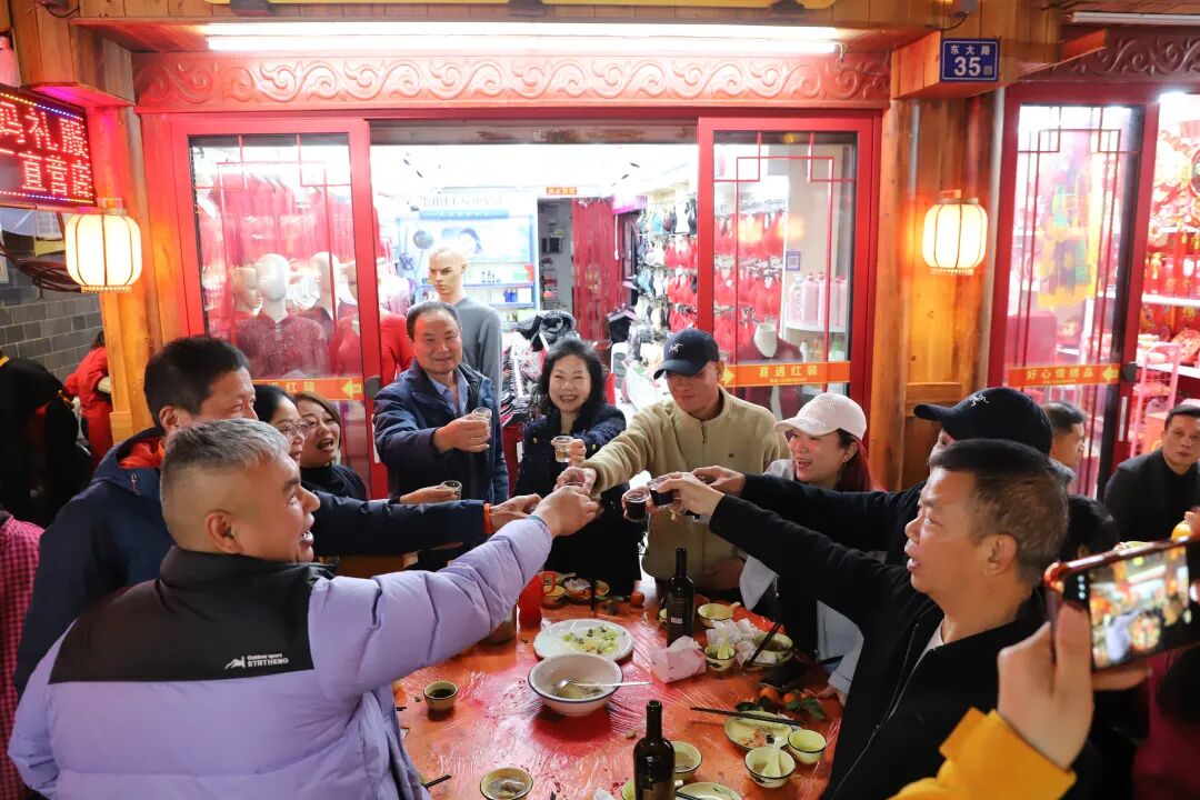 3月7日晚,我市城南街道东风社区东门头民俗文化街区张灯结彩、暖意融融,两千多名社区居民、群众及商户欢聚一堂,共享传统“百福宴”,共叙邻里情谊。