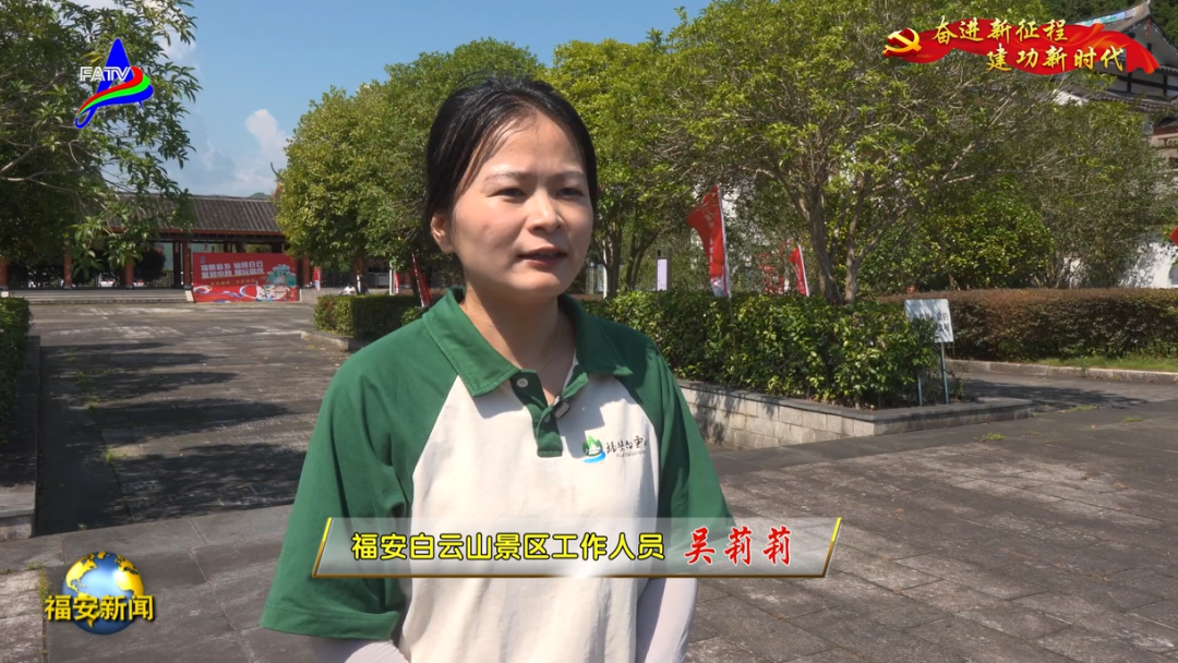 福安白云山景区工作人员 吴莉莉:国庆期间,福安白云山结合景区特色,准备了汉服主题巡游、抖音话题接力、轰趴馆、露营体验等丰富多彩的活动,增添游玩乐趣,满足不同游客的需求,欢迎广大游客来福安白云山,开启一场充满惊喜的国庆之旅。