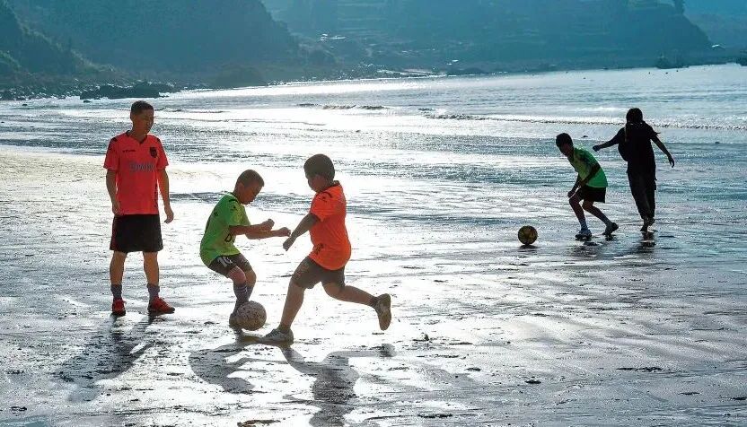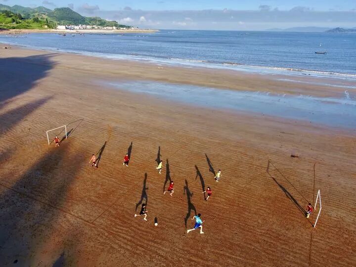 霞浦下浒镇两面临海,过去是闽东沿海抵御倭寇的要冲之一。在下浒,曾有一支由一群孩子和一个大人组成的“长风足球队”,球队晴天的主场是海边一片沙滩,雨天则是镇里明代古堡的一座寺庙。在沙滩上,用树枝画出场地、花100元买来塑料管拼成球门,海风、海浪做伴,一场酣畅淋漓的球赛就能开始。