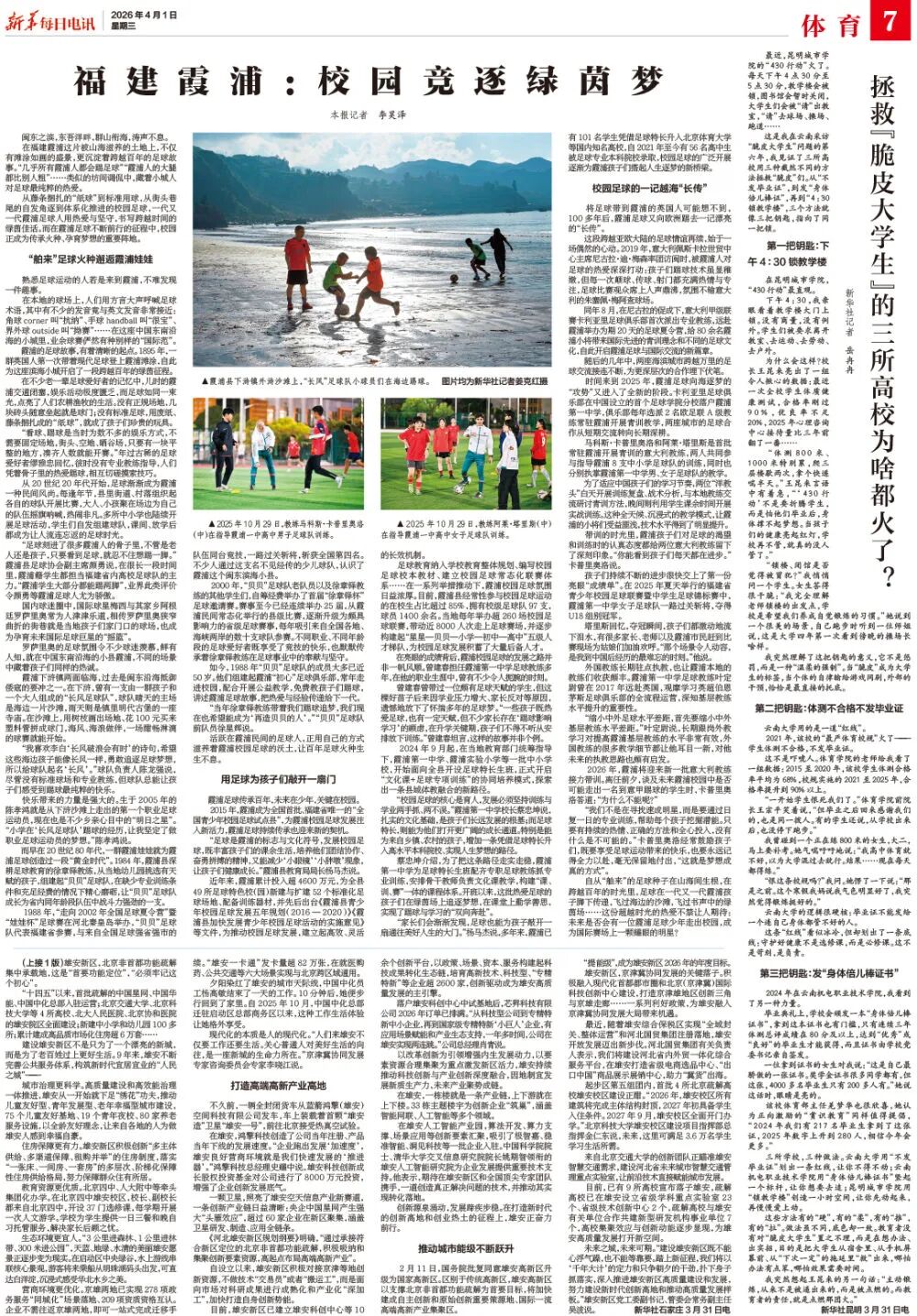 “家长们会渐渐发现,足球也能为孩子敲开一扇通往美好人生的大门。”杨马杰说,多年来,霞浦已有101名学生凭借足球特长升入北京体育大学等国内知名高校,自2021年至今有56名高中生被足球专业本科院校录取,校园足球的广泛开展逐渐为霞浦孩子们搭起人生逐梦的新桥梁。