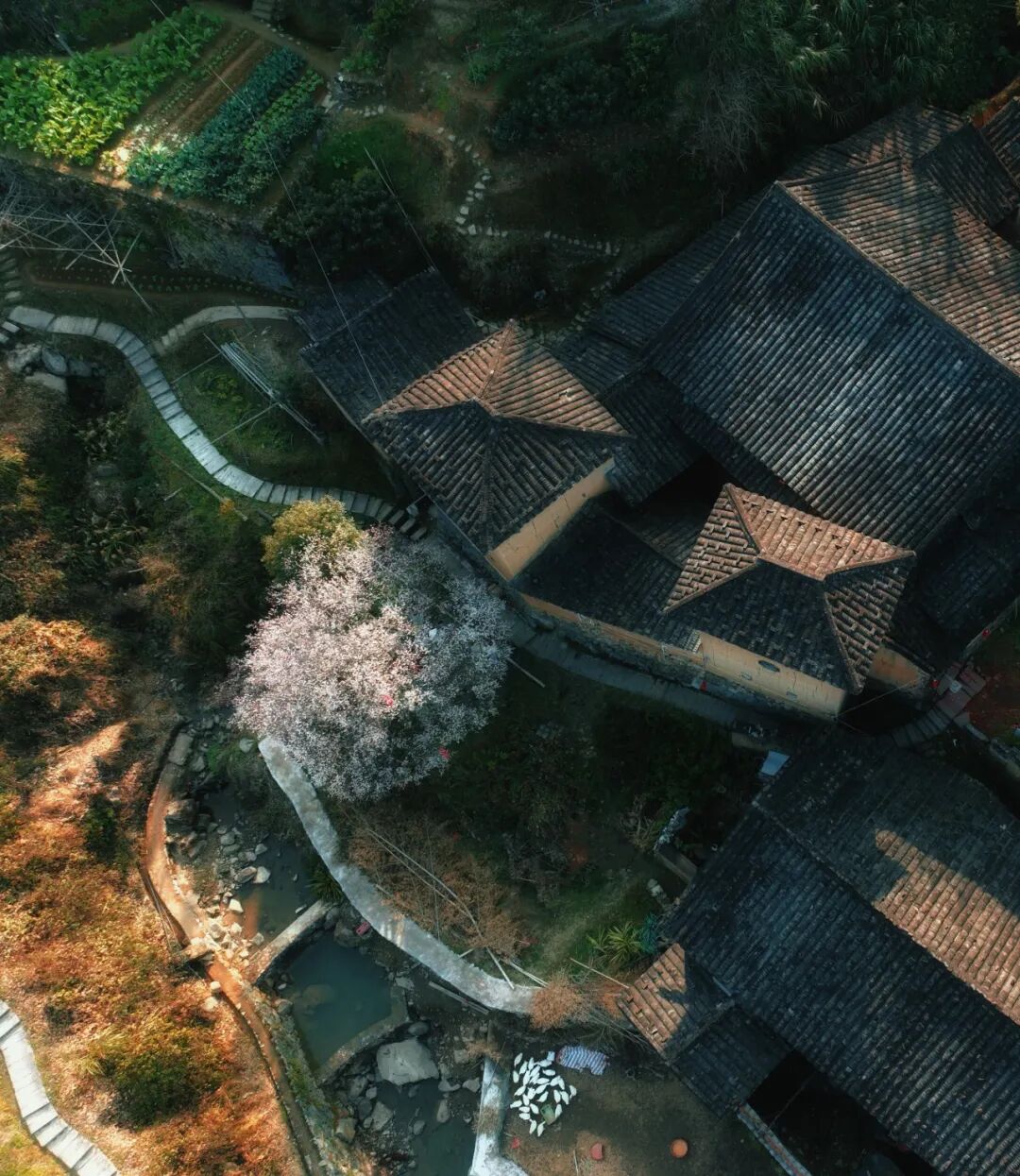 冬日的闽东藏着一场温柔的邂逅,福安廉岭村的青梅树迎着寒风悄然绽放,白霜色的花瓣缀满枝头,漫山遍野如覆白雪,与古朴的畲族老屋、蜿蜒的千年古道相映成趣,勾勒出一幅诗意的山居画卷。