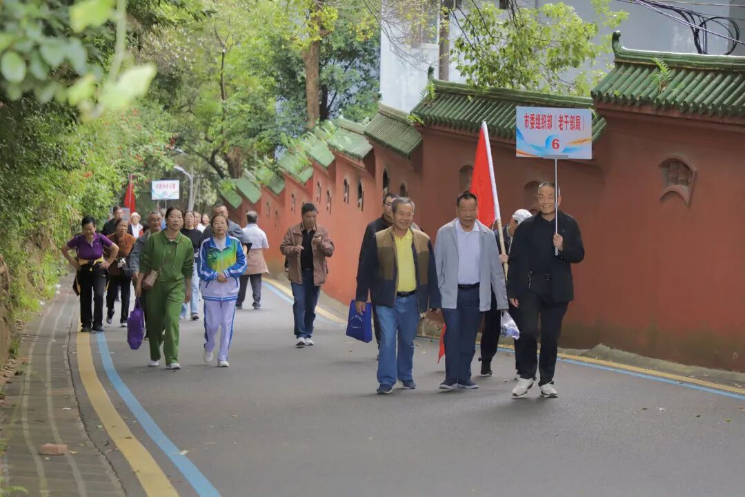 活动现场,千余名老年朋友迈着矫健的步伐,沿着天马山“福道”有序登山。大家结伴而行,有说有笑,呼吸着山间清新的空气,欣赏着沿途秋日美景,展现出积极乐观、健康向上的精神风貌。