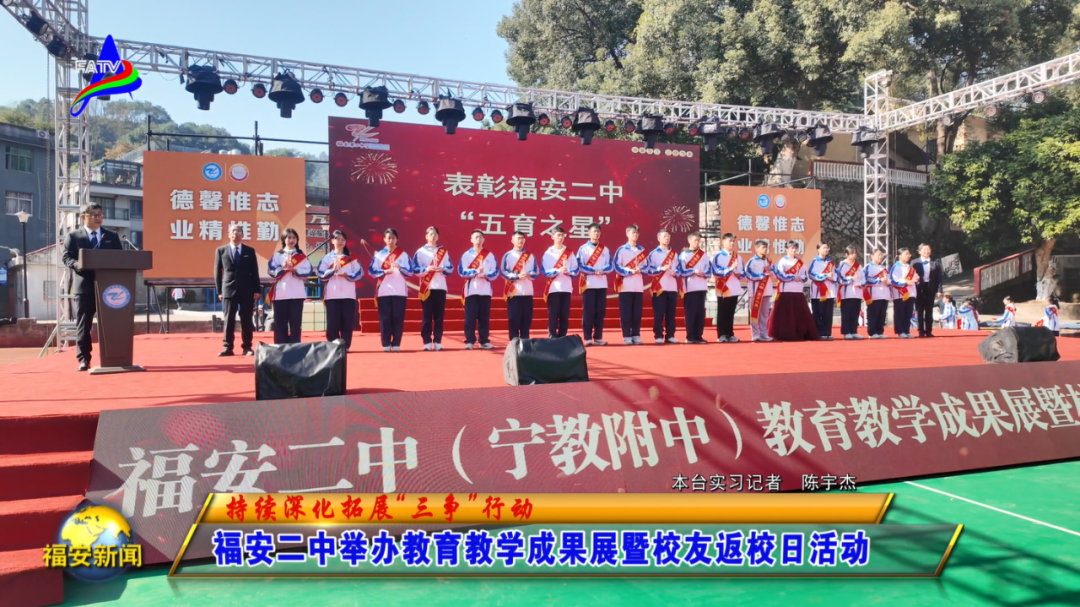 12月6日,福安二中举办“弦歌不辍七十载 薪火相传启新元”教育教学成果展暨校友返校日活动。国家审计署一级巡视员林清,福建证监局原局长魏书松,宁德市教育局局长郭海鸣,市委常委、宣传部部长周华健,福安经济开发区领导章斌杰等出席活动。