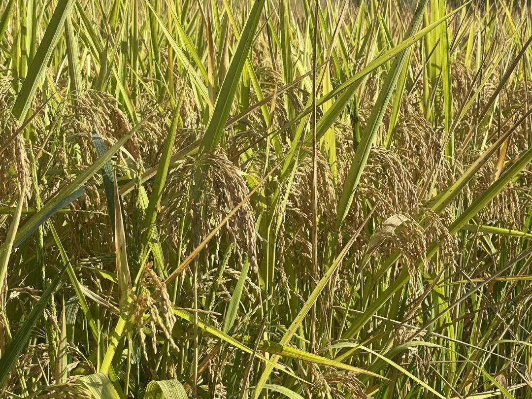 弯腰细看,秋日的秘密藏在稻穗的每一个细节里:沉甸甸的稻穗谦逊地低垂,金黄的谷粒撑开外衣,露出细腻的纹路;稻叶边缘泛起赭红,与金黄的稻穗构成自然的渐变。