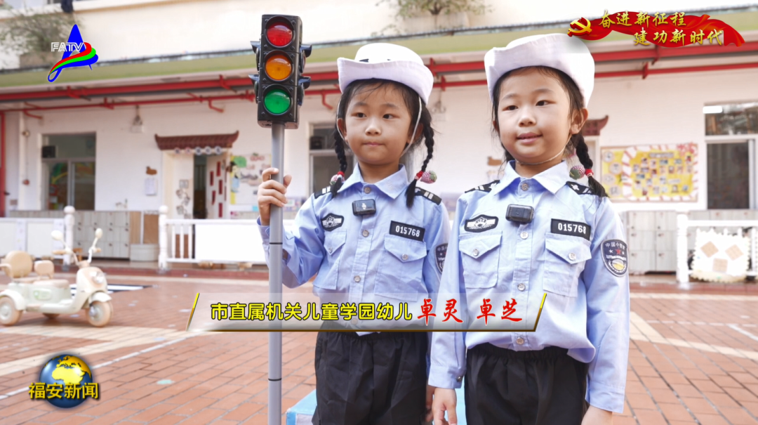 市直属机关儿童学园幼儿 卓灵(左) 卓芝(右):走路要走人行道,过街要走斑马线,马路不是游乐场,千万别打闹,红灯停绿灯行,遇到红灯准备好,一停二看三通过,安全最重要。