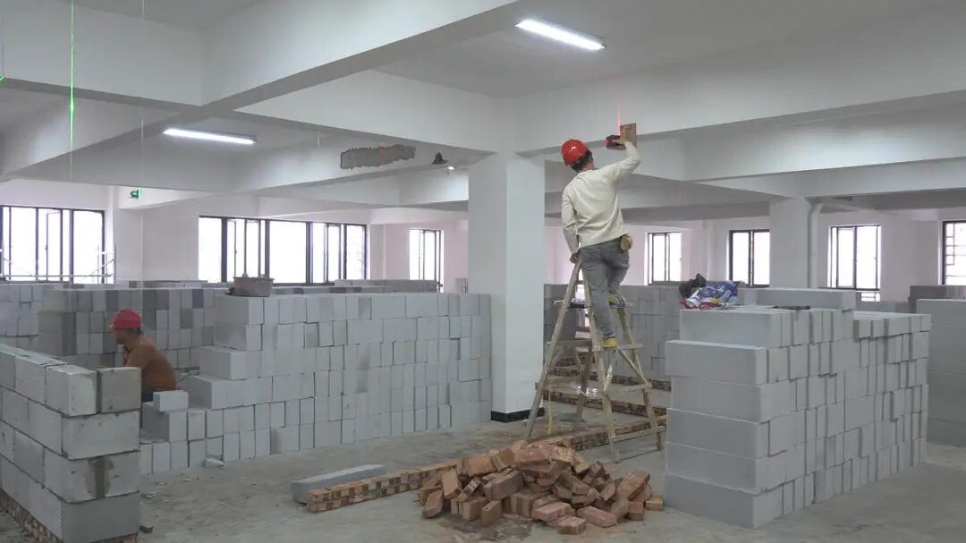 近日,记者在溪北洋新区中建锦绣里小区18号楼的溪潭卫生院溪北洋院区项目建设现场看到,工人们正在加紧砌筑和加固墙体,按照标准化诊疗服务空间布局对原有建筑楼层、结构布局进行规整。