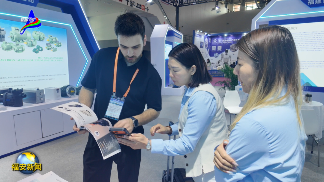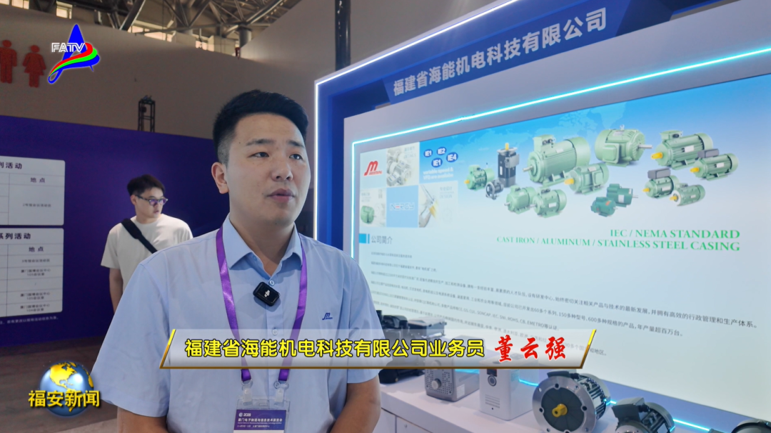 福建省海能机电科技有限公司业务员 董云强:这次我们带来的产品有立式多级泵、智能泵等各种产品,我们的智能泵可以做到过载过热保护、智能启停、远程超控等功效,刚有东南亚市场的客商看了我们的产品,对我们产品抱有很大的兴趣,我们对打开东南亚市场抱有很大的信心。