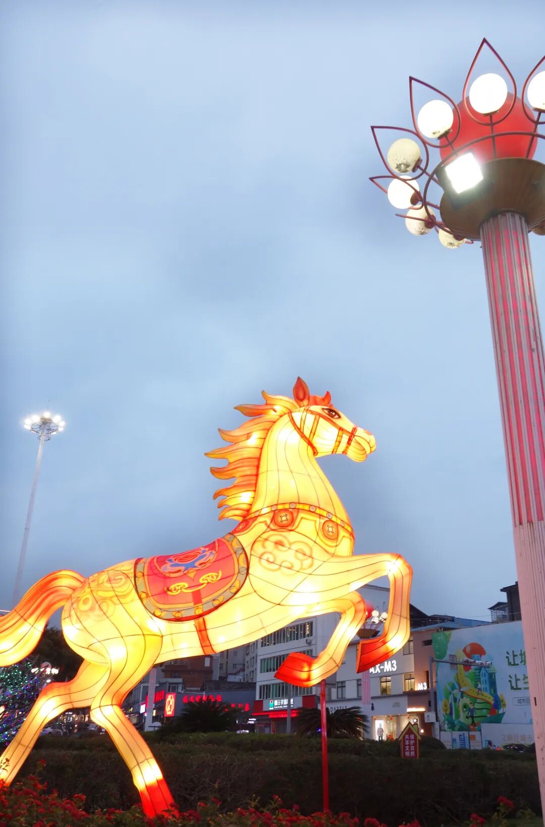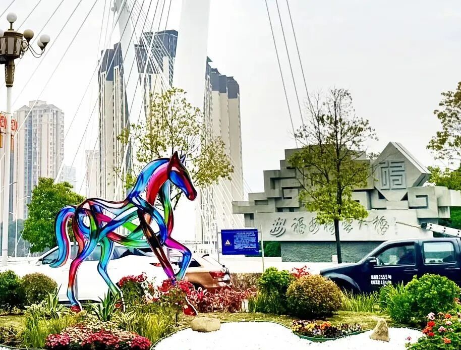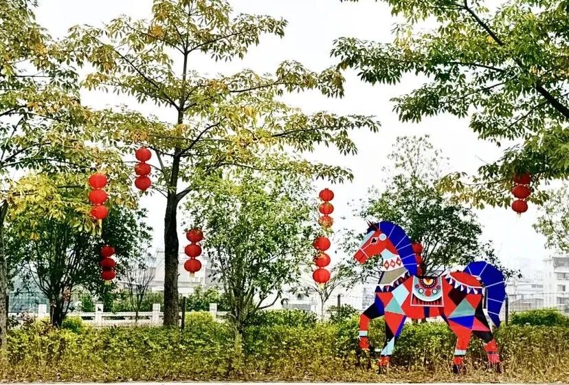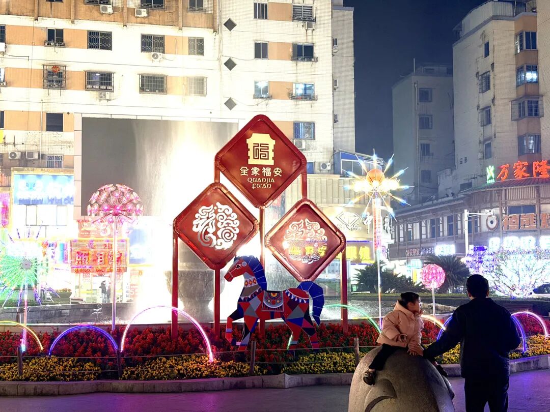 大街小巷、广场公园、溪桥步道……马年元素扑面而来,处处洋溢着喜庆、祥和、热烈的节日氛围。市区中心街、金山路、湖滨路和富春大道等路段红灯笼连缀成河,象征吉祥的暖光洒落,将冬日的清冷驱散。市政广场、莲池广场奔马造型栩栩如生,仿佛竣马正踏春而来,将吉祥的讯息洒向每一个角落。阳春公园里“福”字与“马”元素的装饰灯交相辉映,简约的线条勾勒出马年的灵动。