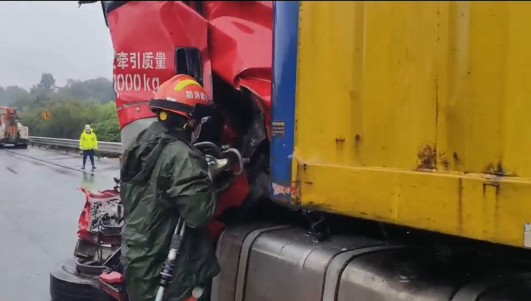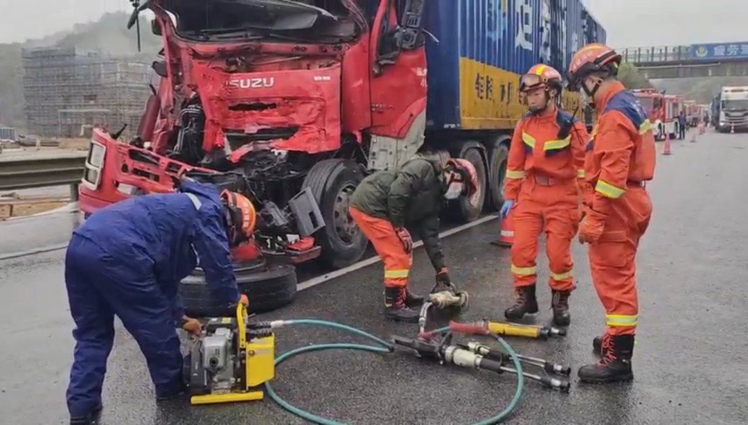 雨天货车侧翻人员被困,他们迅速赶赴现场……