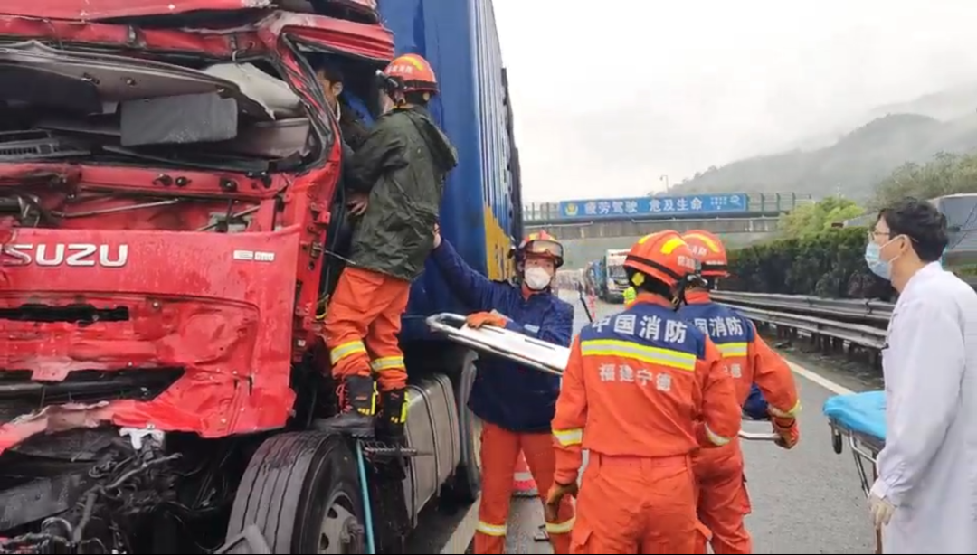 当日6时44分,福安市消防救援大队接到群众报警,立即调派工业路消防救援站2辆消防车、8名消防救援人员前往事发地点。出警途中,现场指挥员主动与高速交警取得联系,提前了解事故现场基本情况,协调交警部门做好现场交通警戒与秩序管控工作,为后续救援作业开辟安全通道。
