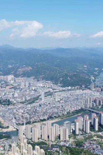 群山叠翠连绵,赛岐镇的全貌尽收眼底