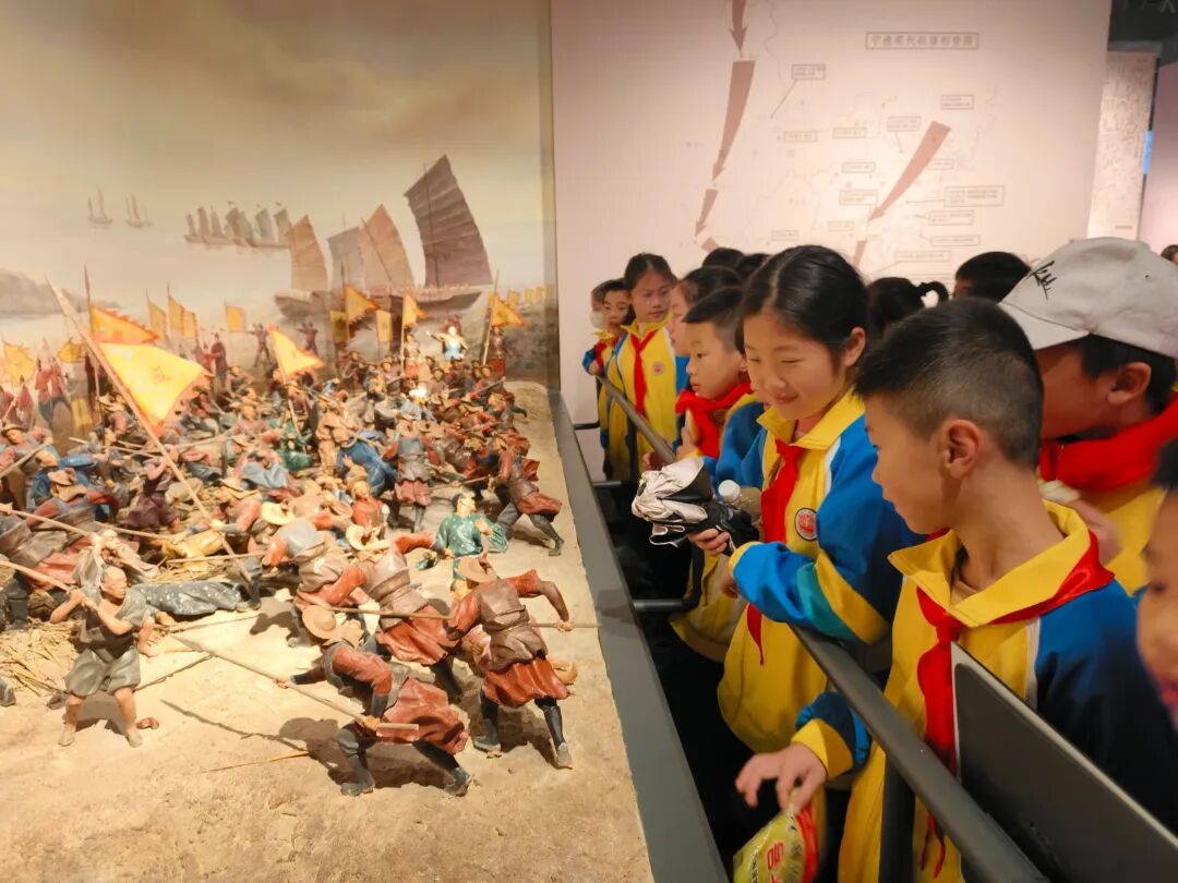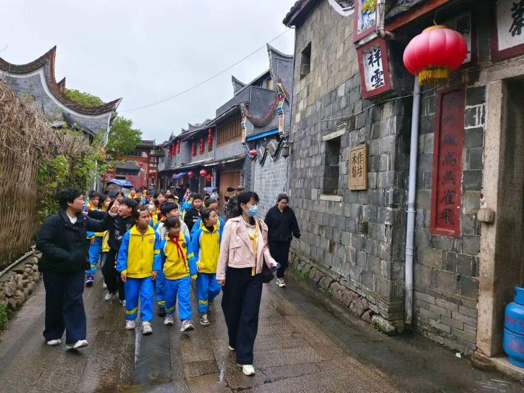 雨后的古镇更显沉静之美。青石板路上,学生用脚步丈量深邃的历史,赞叹明清古建筑的对称之美。黄鞠纪念馆内,老师用精彩的讲解重现灌溉工程全景,学生不仅感受到古镇的审美价值,更领悟到千年水利工程的科学价值。“横屿之战”的复原情景令学生流连忘返,从壮阔的场景中感受戚继光抗倭的英雄气魄,同时也为家乡宁德感到骄傲,地处东海之滨的宁德,在抵御外海、保家卫国的斗争中起到重要作用。