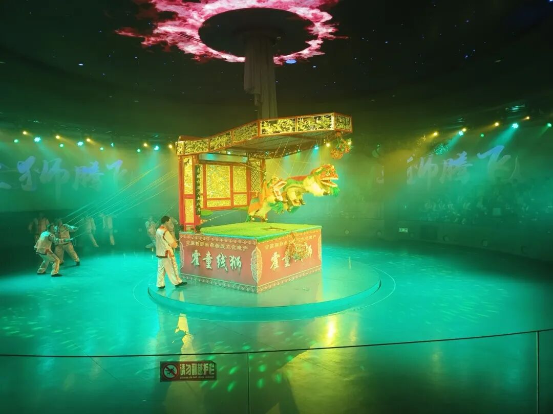 观看线狮凌空翻腾时,非遗传承人展示1386孔位控制模板,学生亲手触摸穿孔牛皮:“每一根丝线都是力学与美学的结合。”