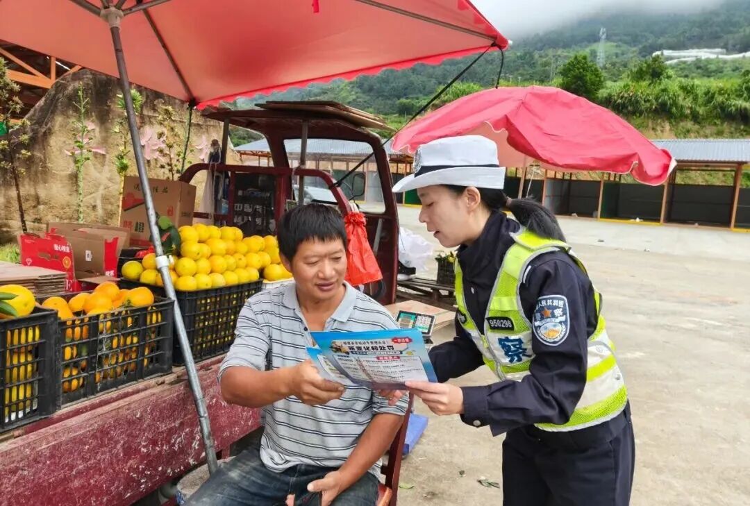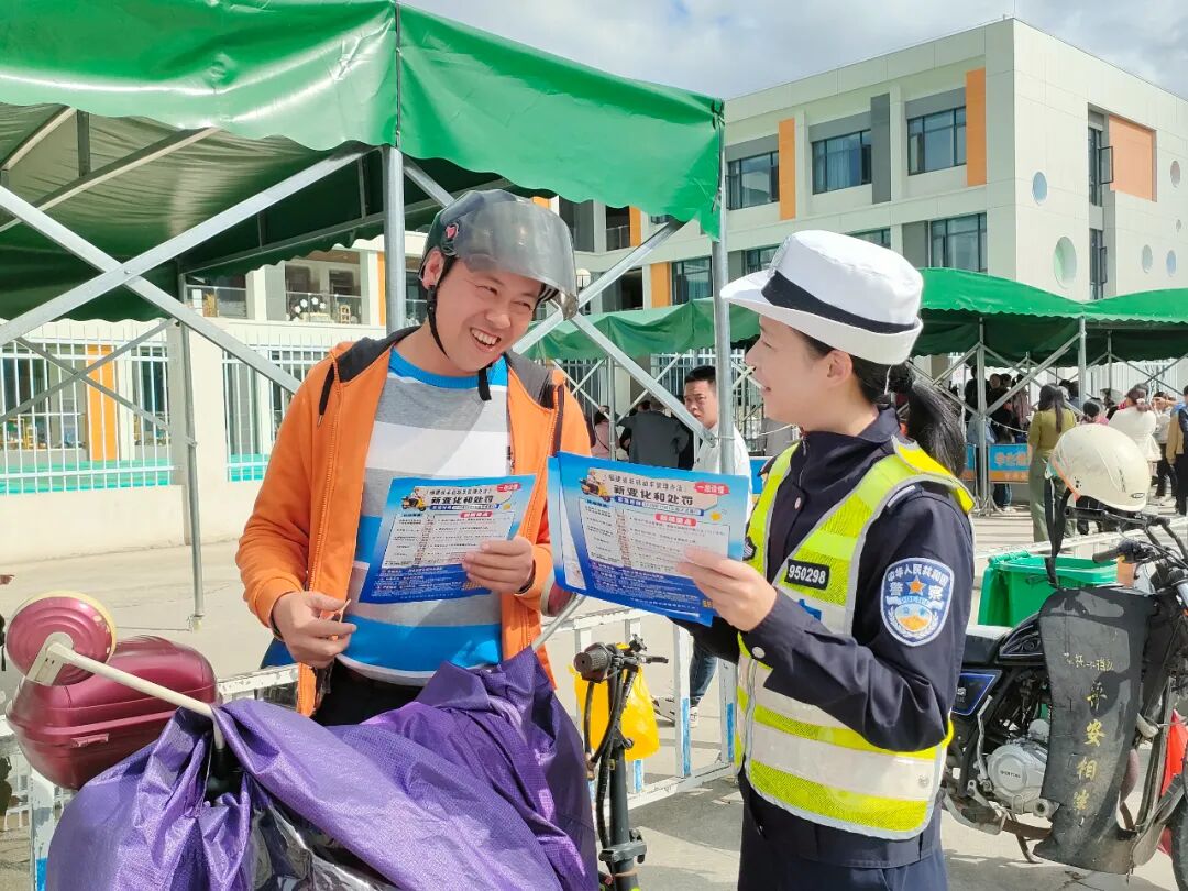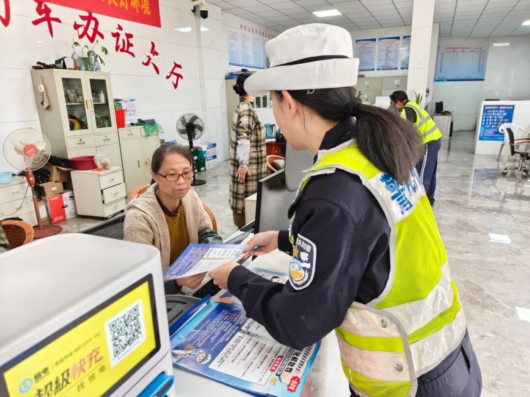 与群众拉家常、讲法规,解答他们最关心的上牌、上路等问题。