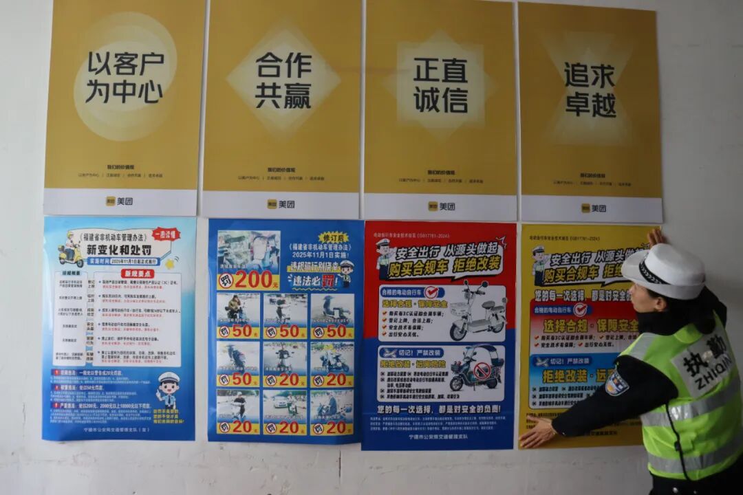 交警走进非机动车生产、销售及维修店铺,通过张贴海报、发放传单等方式,开展修订后的《福建省非机动车管理办法》内容主题宣传。