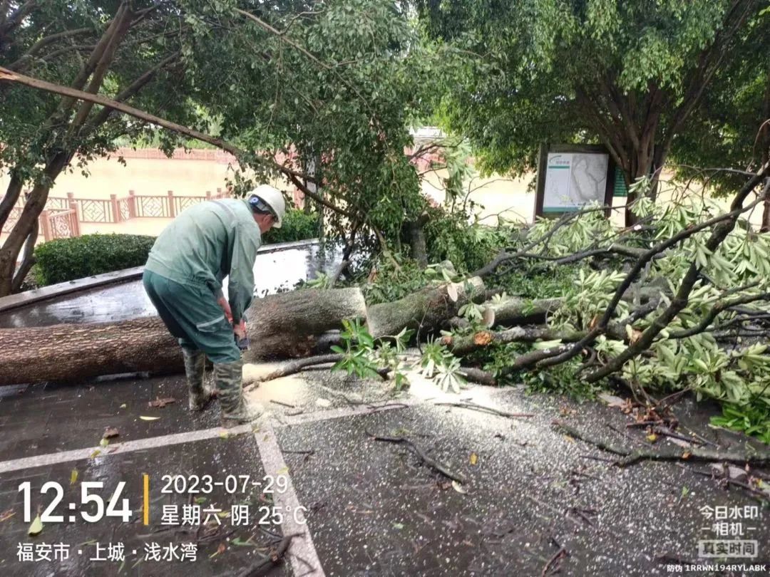 福安:台风过后,园林管护人员紧急处置倒伏树木,并温馨提醒……