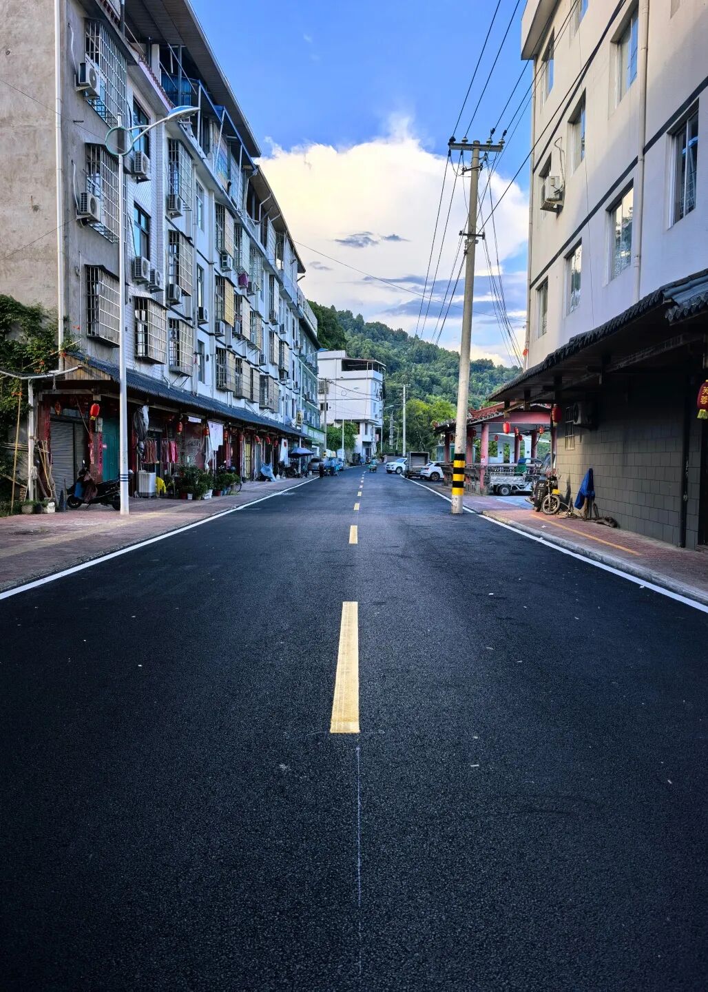 如今,改造后的主干道不仅颜值“在线”,实用性更是大幅提升:平整的沥青路面大大降低车辆行驶噪声,减少了颠簸感;完善的交通标识让通行更有序,有效缓解节庆交通拥堵;整洁的道路环境为移民安置区增添亮色,进一步提升村民和游客的出行幸福感。