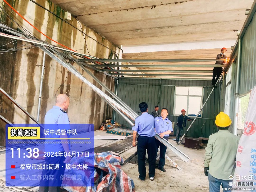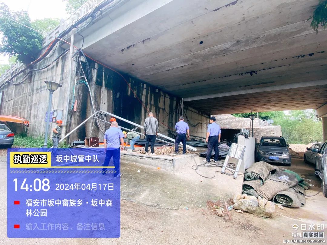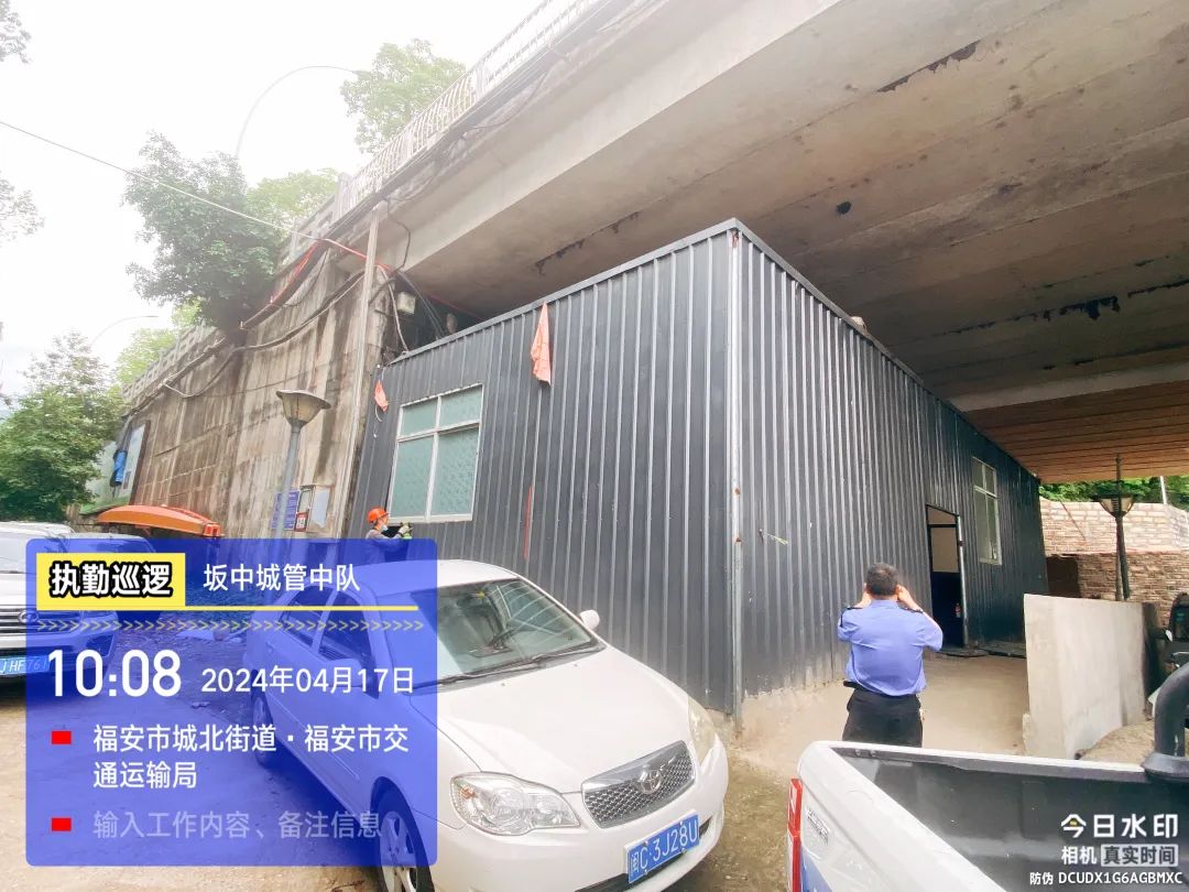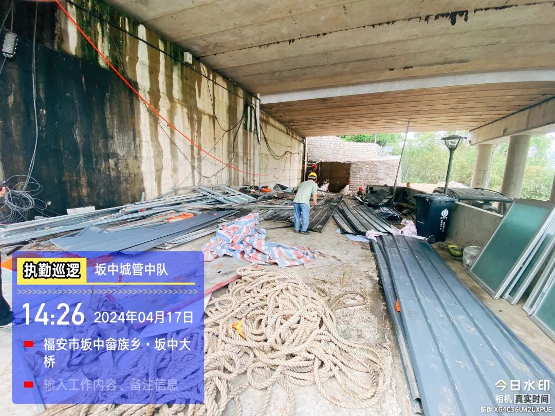 4月17日,福安市城市管理局积极组织人员对坂中大桥下一违章搭盖物进行拆除,腾出土地面积近80平方米。