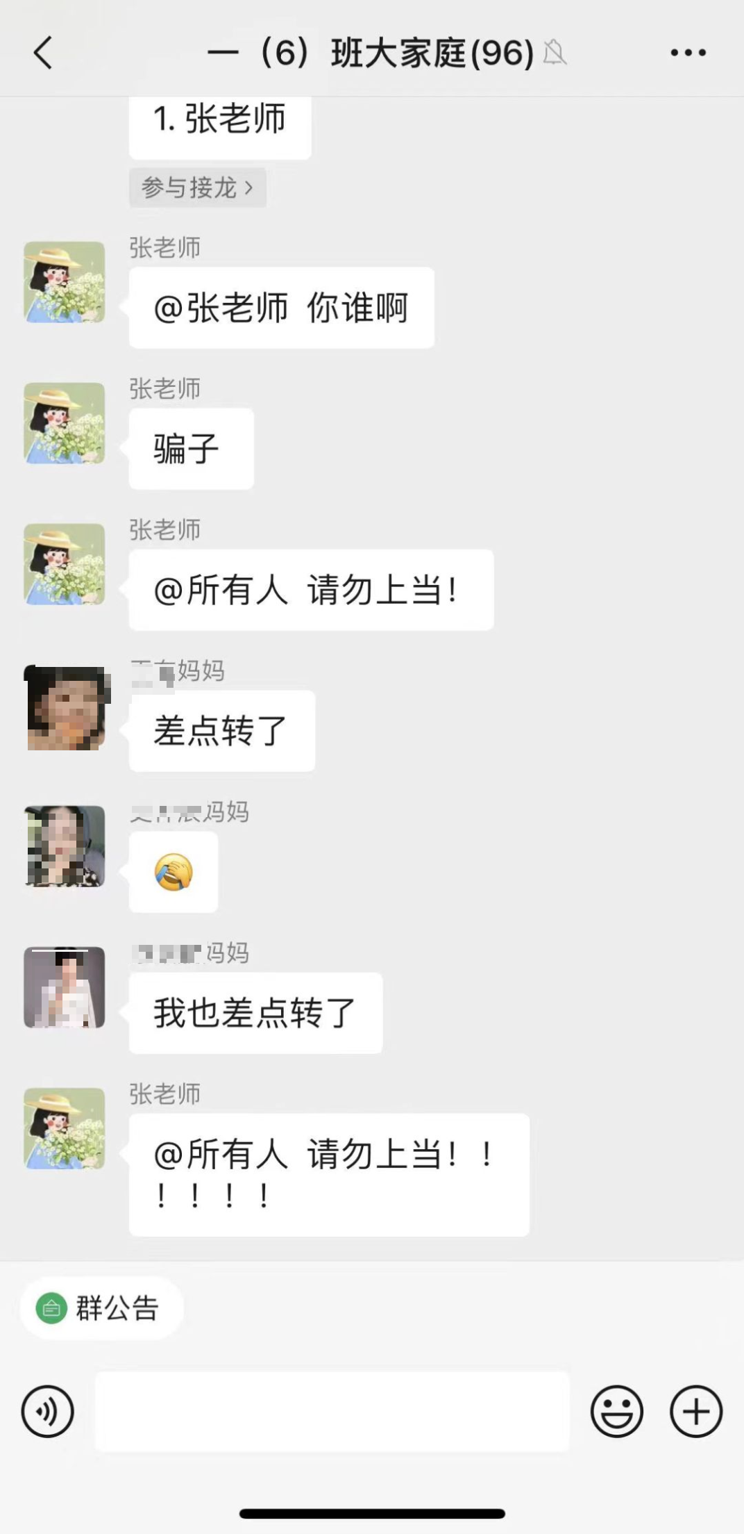 2.老师要加强群管理。家长群应开启入群验证功能 ,并实行实名制,对每一位入群的成员身份进行审核,避免陌生人随意加入。一旦发现身份可疑人员,及时清理出群。同时,要求群成员不乱发、乱点陌生链接。3.经常在校园内开展防范电信网络诈骗宣传活动,提高全校师生及家长的防骗意识,规范收费渠道,尽量避免在班级群内收取各类费用。来源:南通反诈、扬州晚报