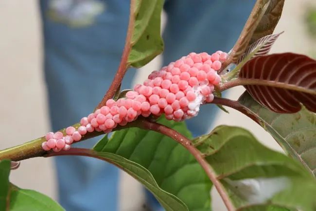 ③福寿螺的卵是鲜艳的红色或粉红色。