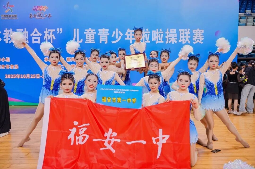 当最后一个节拍落下,运动员们紧握双手,欢呼声与掌声瞬间将赛场淹没——在刚刚结束的2025年宁德市第三届“体教融合杯”儿童青少年啦啦操联赛中,福安一中校啦啦操队凭借娴熟的动作衔接、饱满的精神状态,成功斩获高中/中职组花球自选动作一等奖!
