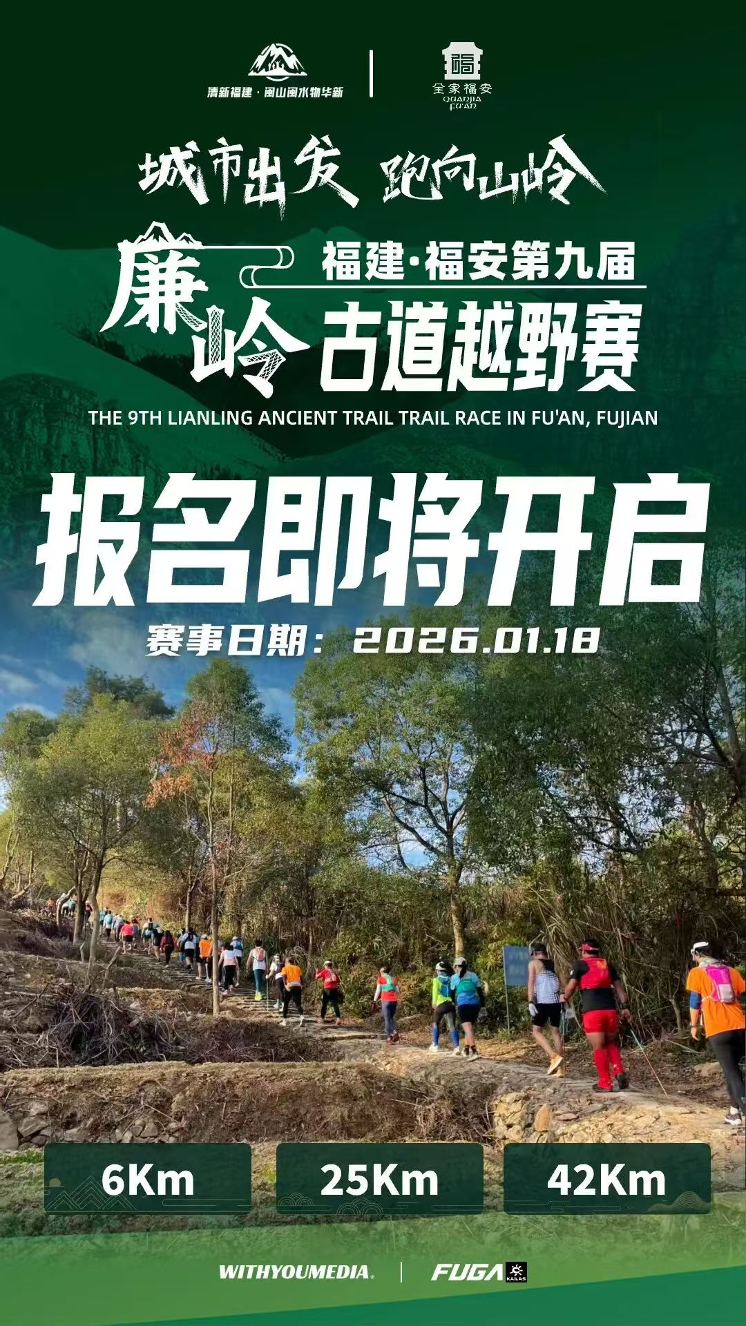 6Km体验山野,25Km挑战廉岭古道,42K攀登山岭