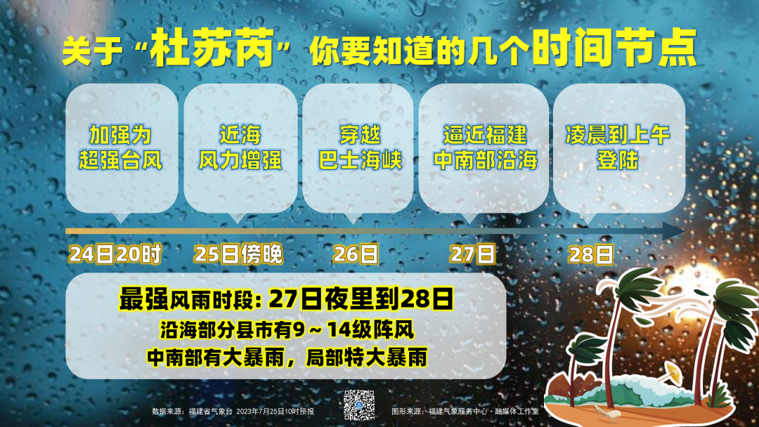 25日傍晚起,我省渔场和沿海海区以及27日夜里至28日沿海部分县市有高危险等级的台风大风灾害风险;相关区域航行或作业的船只应及时回港避风或避开影响区域,同时需做好滨海旅游和沿海养殖的安全管理工作,需注意防范陆上强风对城乡基础设施和工程设施的危害。