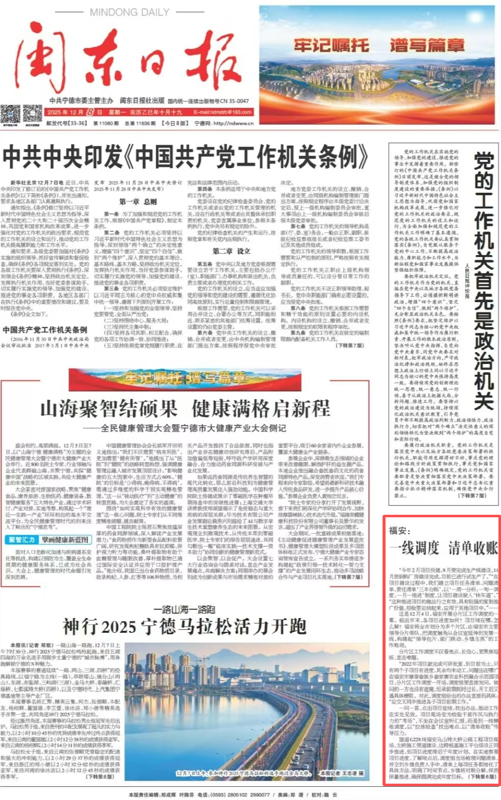 连日来,福安市开展分片区工作调度,将“考场”设在项目现场、企业车间、乡村一线,以“拉练”检阅实绩,以“收账”传导压力,打破“会议室里谋发展”的传统模式。同时通过问题清单化、清单责任化、责任具体化,对年度重点任务进行“收官对账”,将“十五五”发展谋划融入基层。该探索实践获《福建日报》《闽东日报》等省、市级媒体报道。