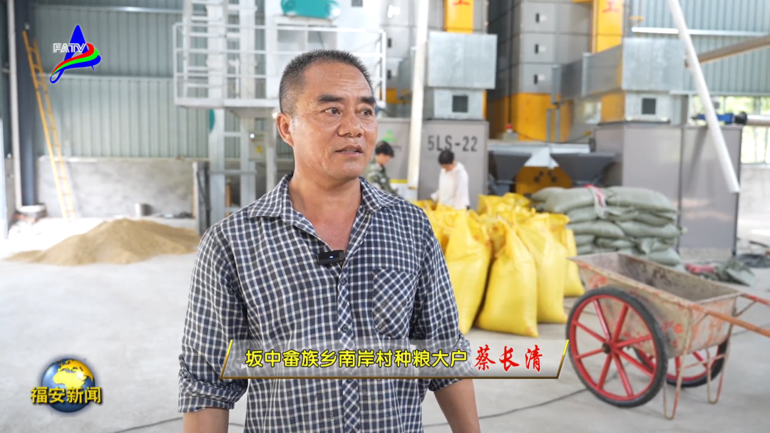 坂中畲族乡南岸村种粮大户 蔡长清:以前我们割的稻谷放在外面晒,就是怕下雨,现在再多稻谷放在这个烘干机里面,都可以一下子烘干。