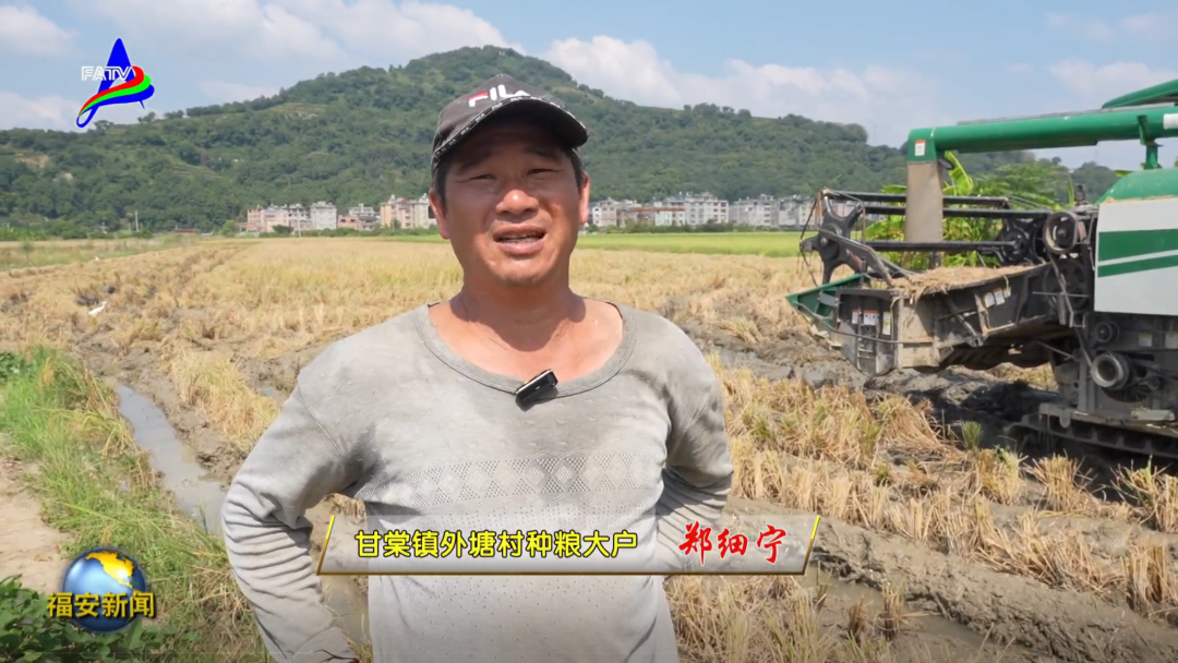 甘棠镇外塘村种粮大户 郑细宁:一亩地,机器收割15分钟左右,人工3个人都要割一天,我现在收了三分之二,剩三分之一,过几天就收完,今年天气好,产量高了20%,每亩800斤左右。