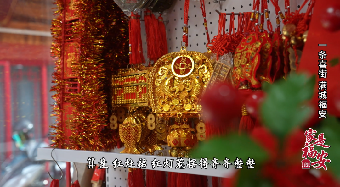 乔迁新居,是福安百姓人生中的又一大喜事。货架上,算盘、红灶裙、红灯笼摆得齐齐整整。黄道吉日里,家主肩挑 “家规” 钱柜、身披红布袋,女主人手提红灯、挽着红灶裙,十样“十全十美”的吉物跟着队伍入宅,脚步踩出满街喜。