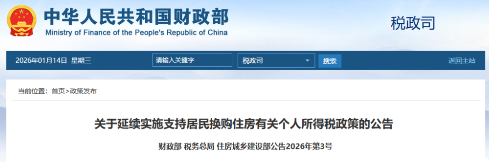 财政部 税务总局 住房城乡建设部公告2026年第3号