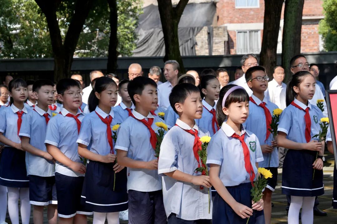 默哀毕,少先队员代表手持鲜花,献唱《我们是共产主义接班人》。清脆嘹亮的歌声,表达新时代少年儿童继承革命先辈光荣传统、向着理想勇敢前进的坚定决心,传递着后继有人、薪火相传的信念。