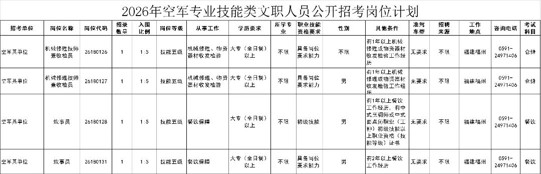 今起报名,福建有岗!军队文职公开招考→