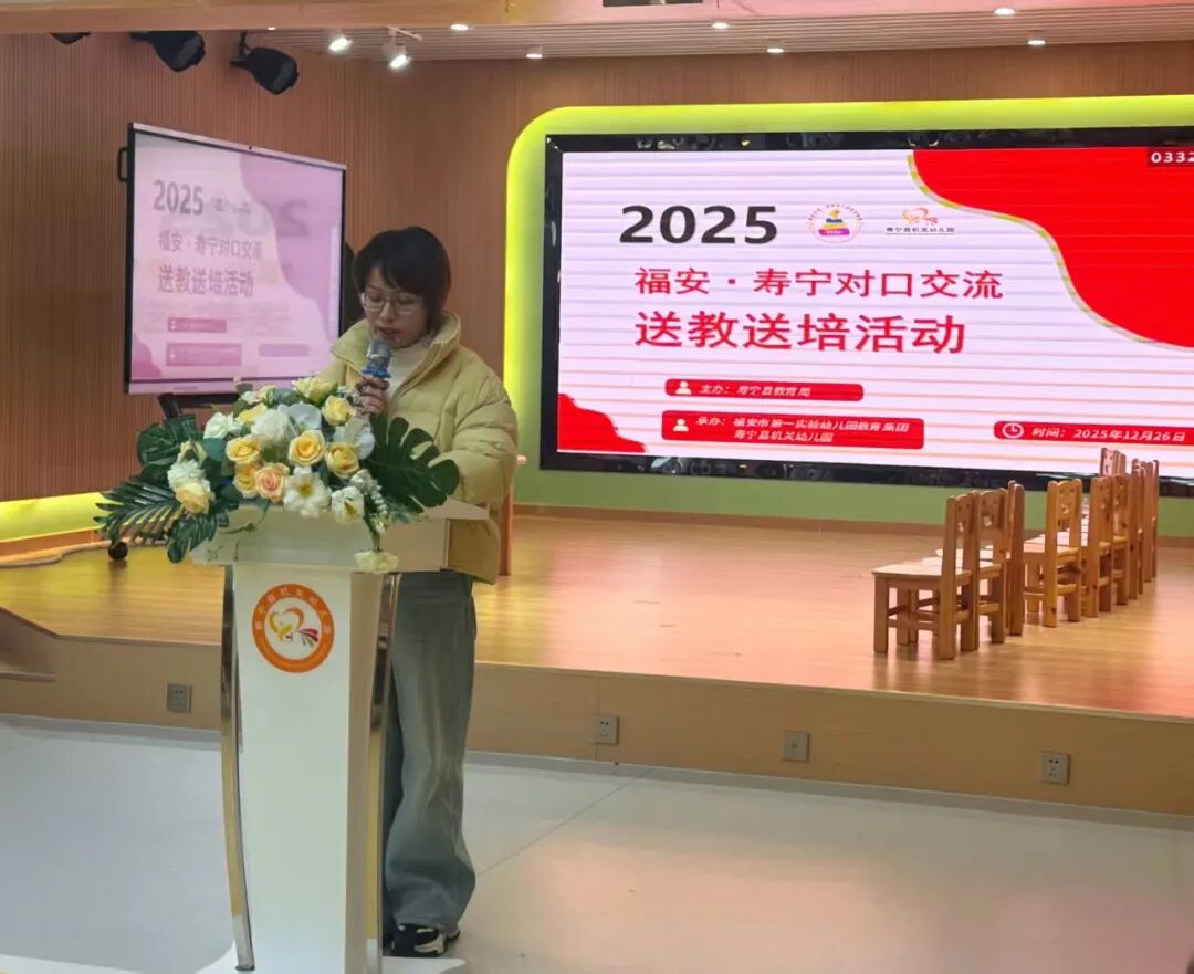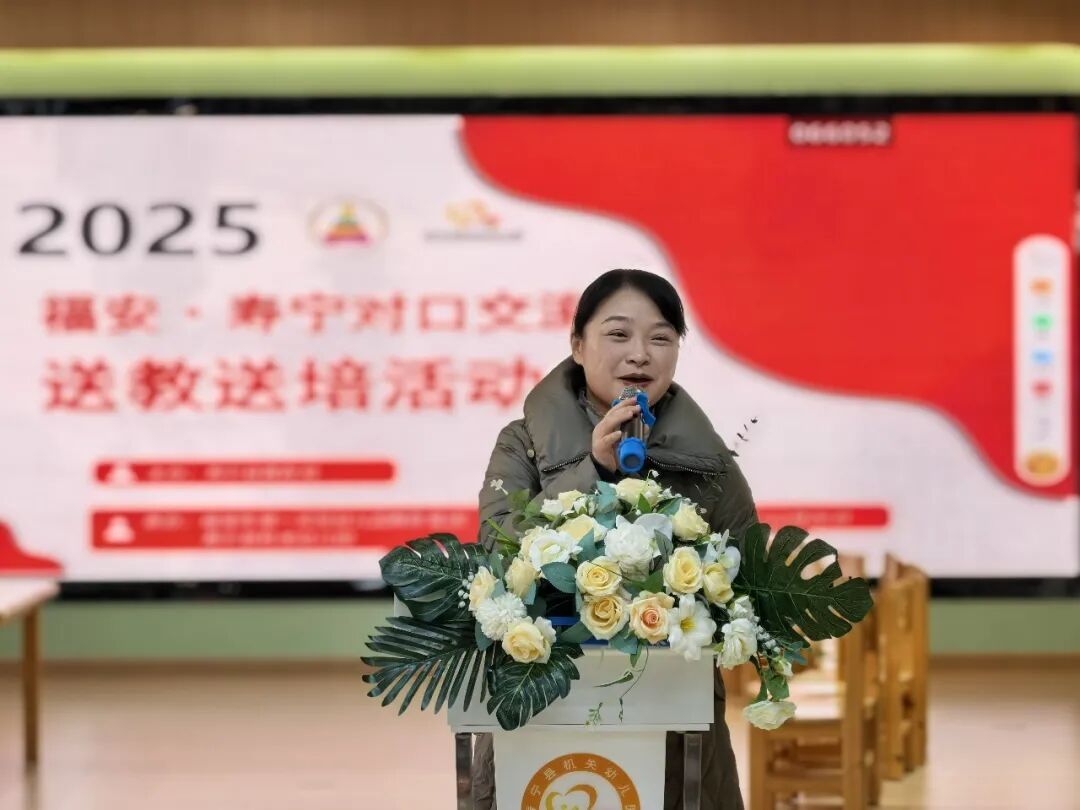冬韵启智,教研相长。12月26日,一场以“探索・表达・创造——聚焦幼儿主动学习”为主题的福安・寿宁交流共建送教送培活动,在寿宁县机关幼儿园技校园区温情启幕。本次活动由寿宁县教育局主办、寿宁县机关幼儿园承办,汇聚了福安市实幼教育集团骨干团队与寿宁县相关领导、各公、民办幼儿园的园长及骨干力量100余人,以优质教学展示、深度专题讲座为纽带,搭建起跨县幼教交流的坚实桥梁。