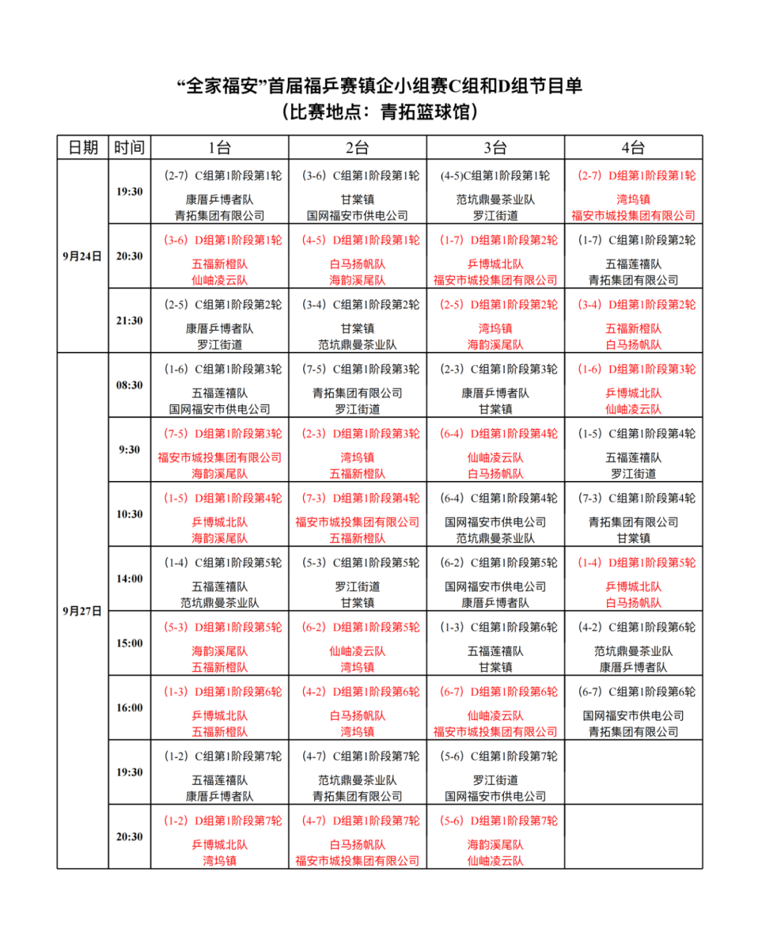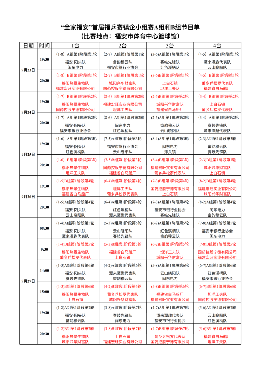 “全家福安”首届福乒赛镇企小组赛