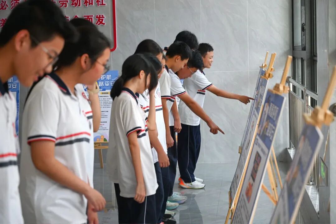 各班级学生在班主任的带领下,分批次有序参观,同学们认真聆听讲解、仔细阅读内容,不时驻足讨论,学习氛围浓厚。