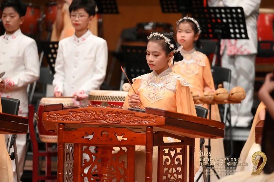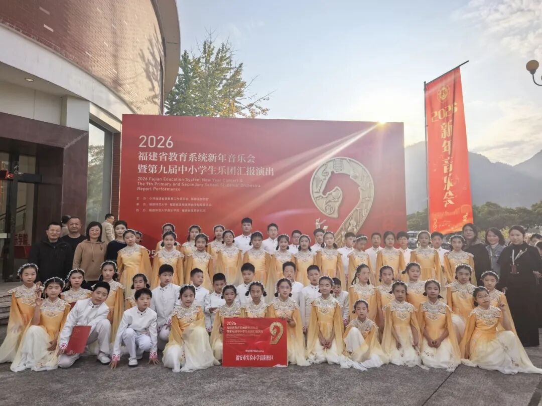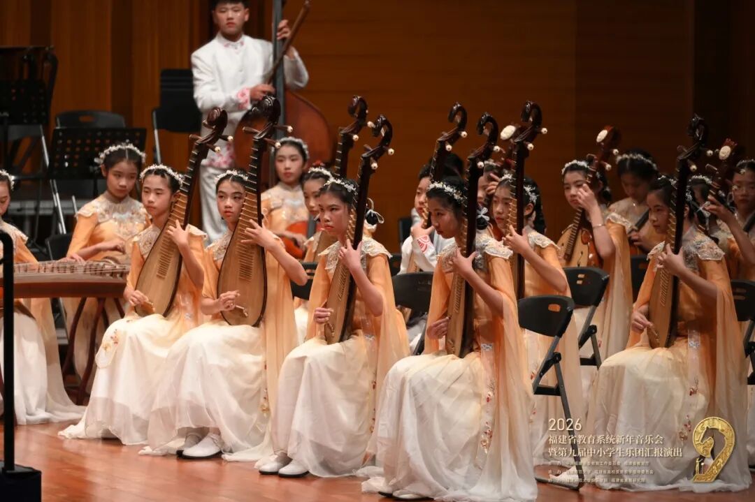 12月28日,“2026年福建省教育系统新年音乐会暨第九届中小学生乐团汇报演出”在福州举行。来自福安市实验小学富阳校区的民乐队作为宁德市唯一代表登台献艺,精彩演绎原创民乐作品《桂香引春曲》,用悠扬旋律展现闽东校园文化风采。这也是该校民乐队继此前之后,第二次登上省级展演的重要舞台。
