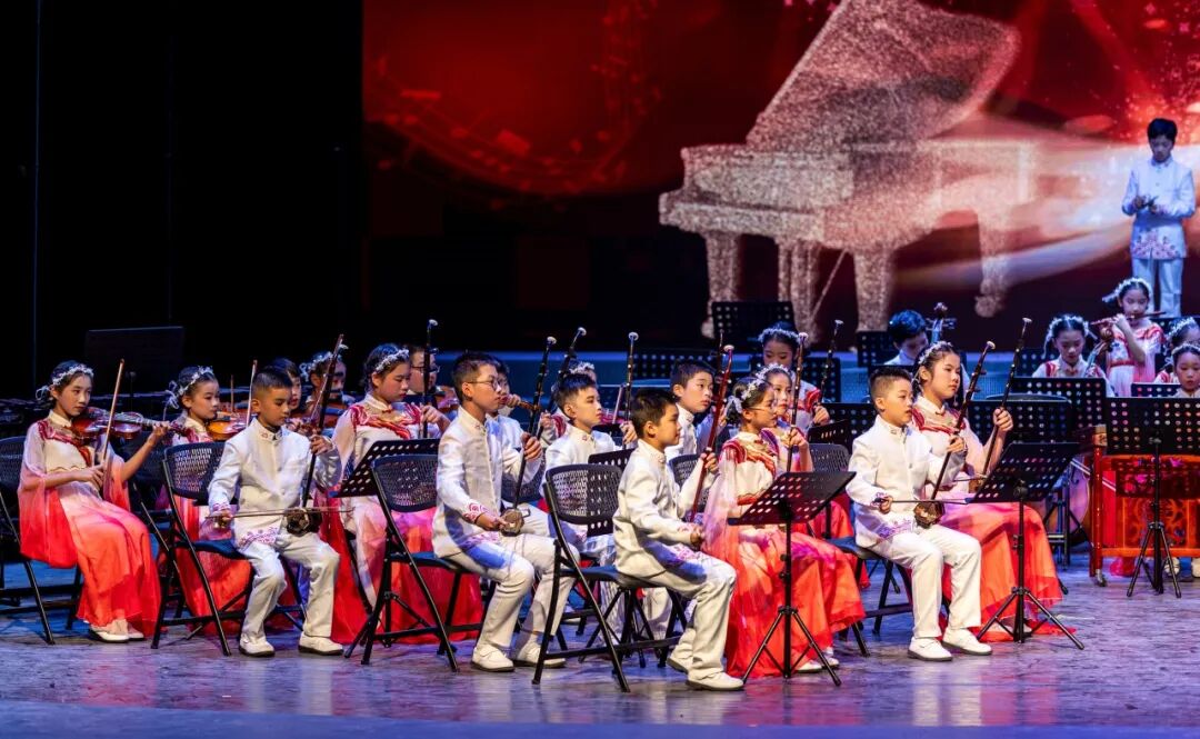 作为整场音乐会中仅有的两支民乐队之一,福安实小富阳校区民乐团的表演备受瞩目。演出中,小演奏家们神情专注、配合默契,竹笛的清亮、二胡的醇厚、扬琴的明快交织融合,将《桂香引春曲》的婉转意境演绎得淋漓尽致。悠扬的旋律在会场中流淌,既传递出桂花绽放的灵动之美,也彰显出少年学子的蓬勃朝气,赢得了现场观众的阵阵掌声。